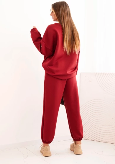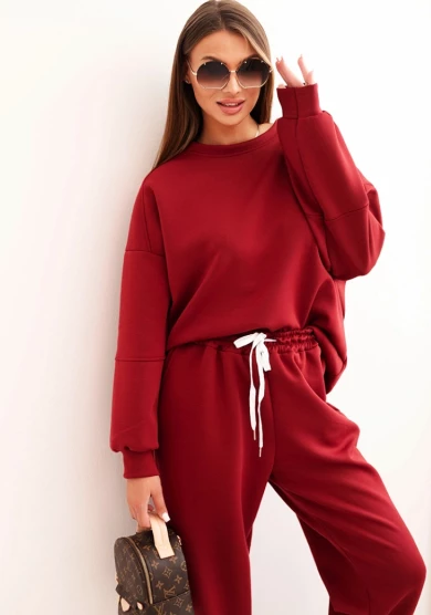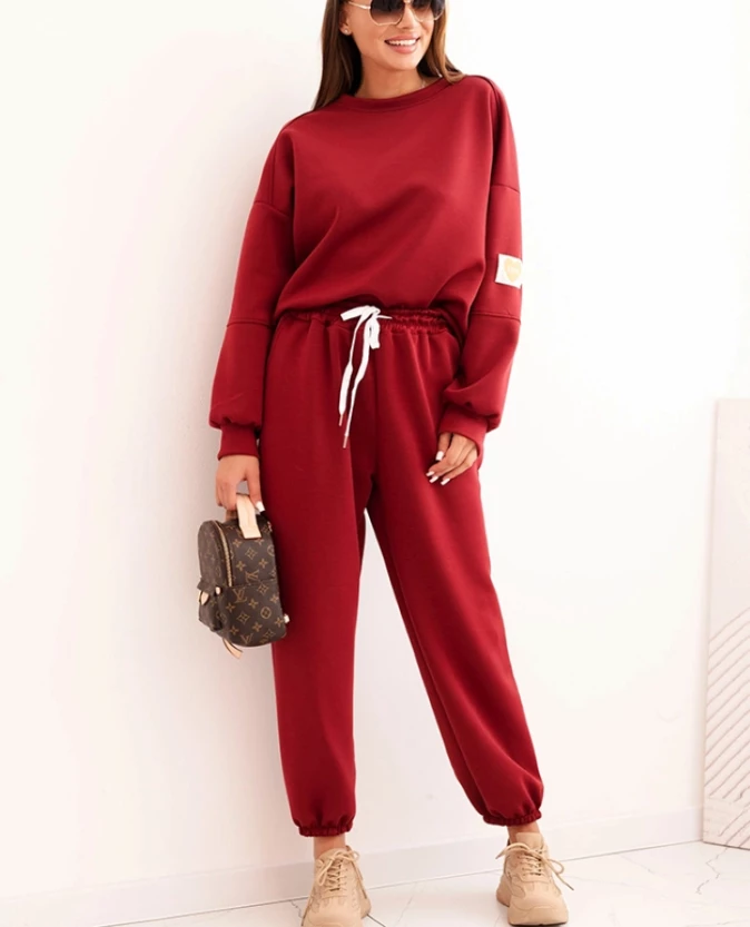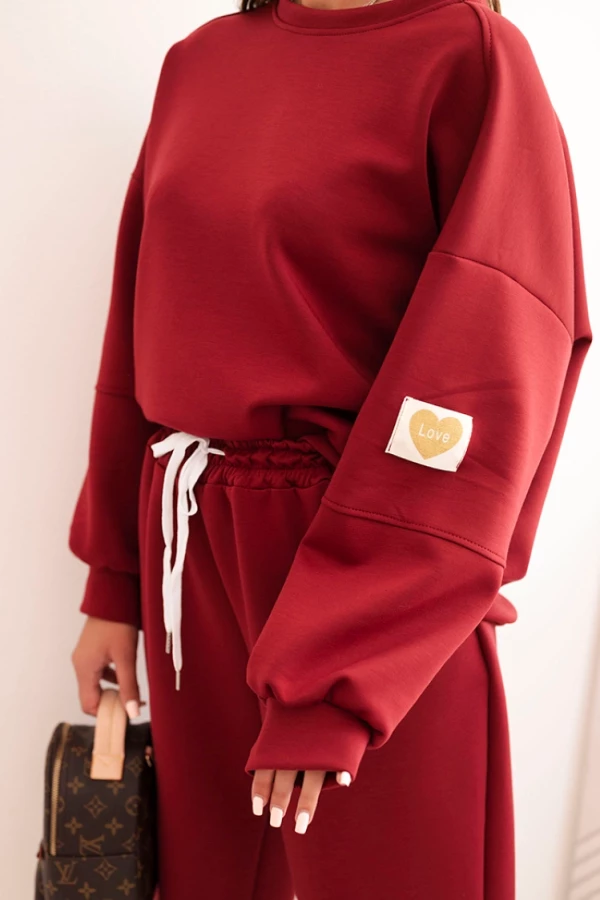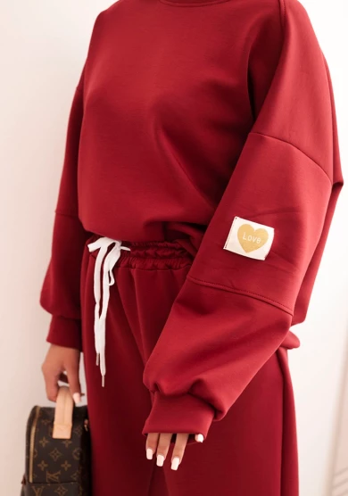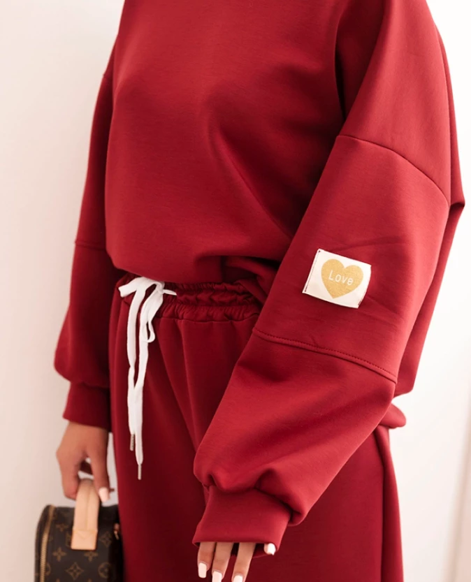 Komplet damski masełkowy z luźną bluzą i spodniami z napisem LOVE Bordowy