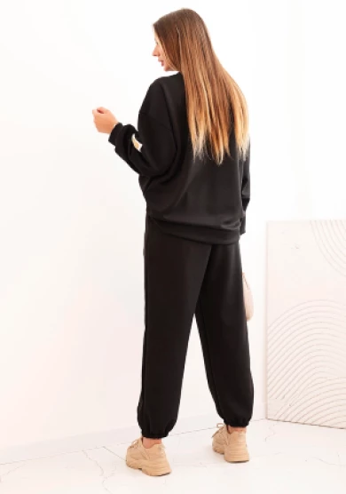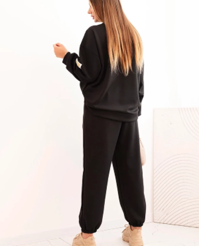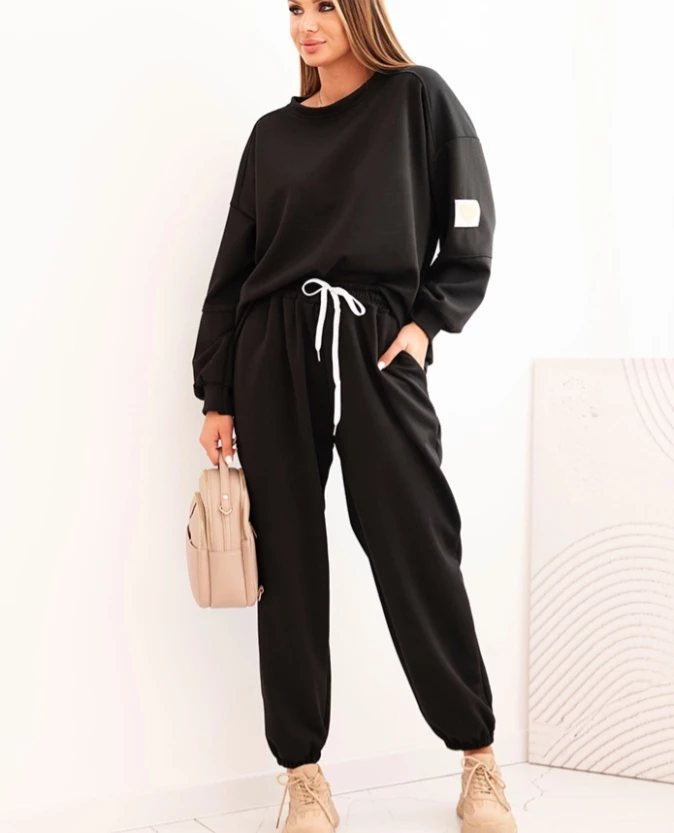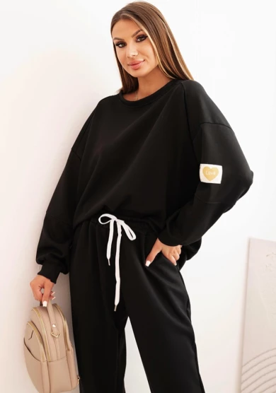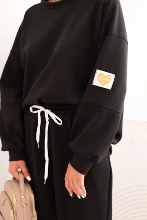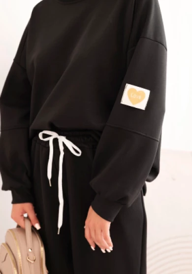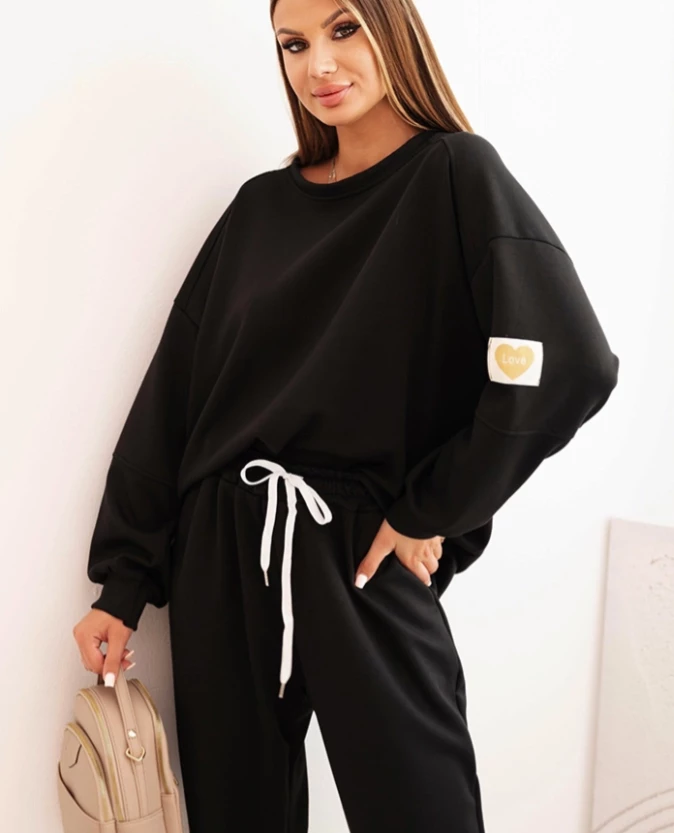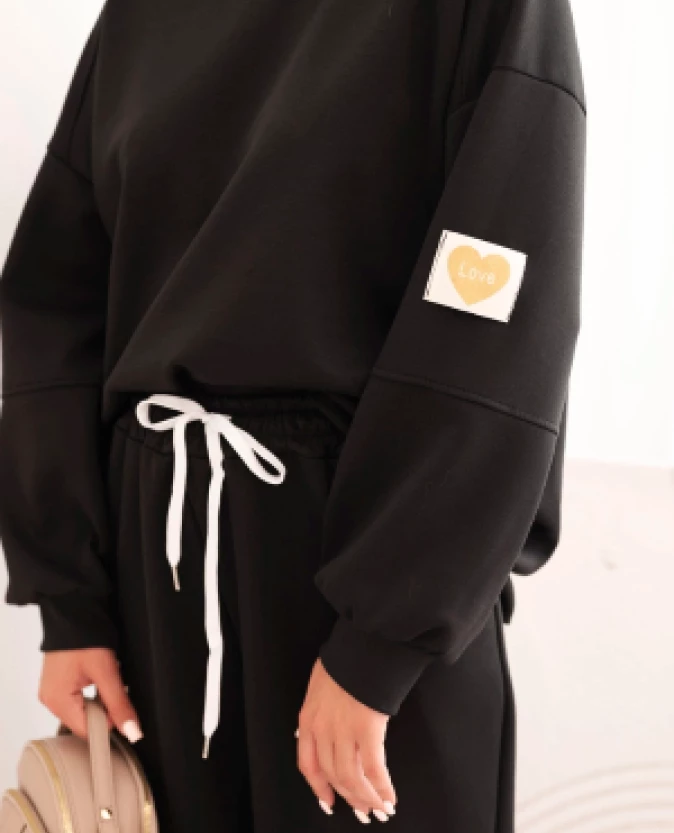 Komplet damski masełkowy z luźną bluzą i spodniami z napisem LOVE Czarny