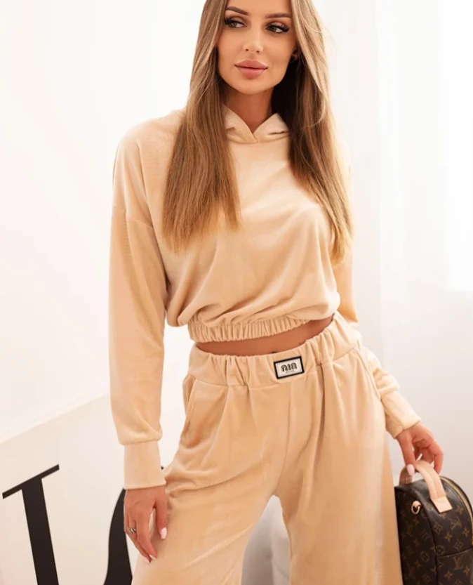 Welurowy komplet dresowy – Beżowy