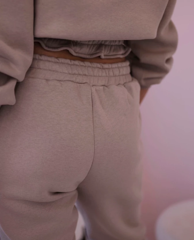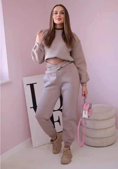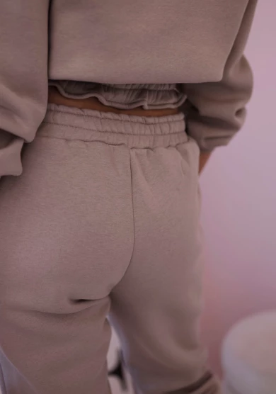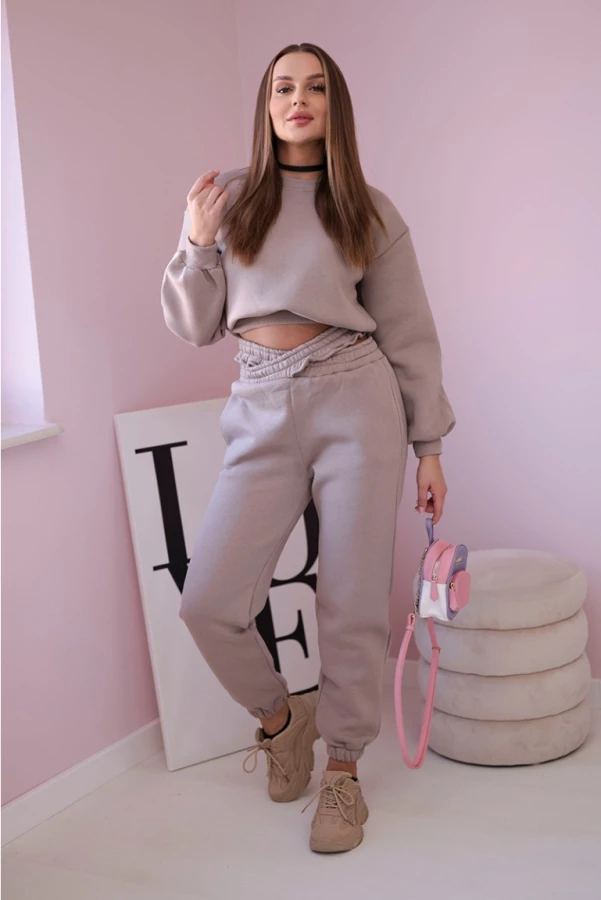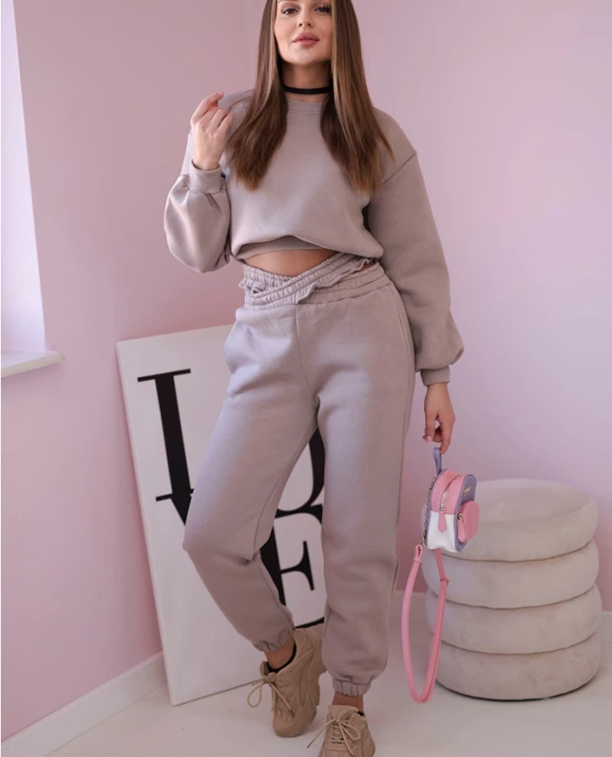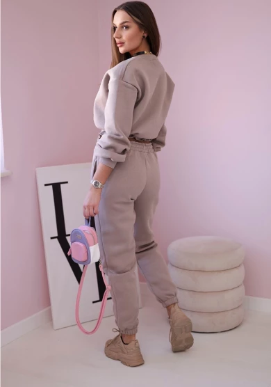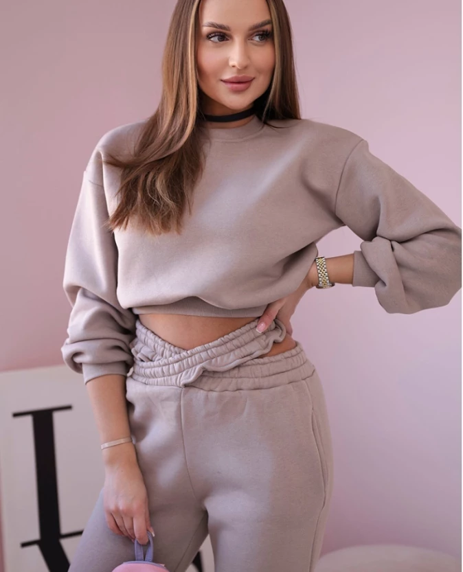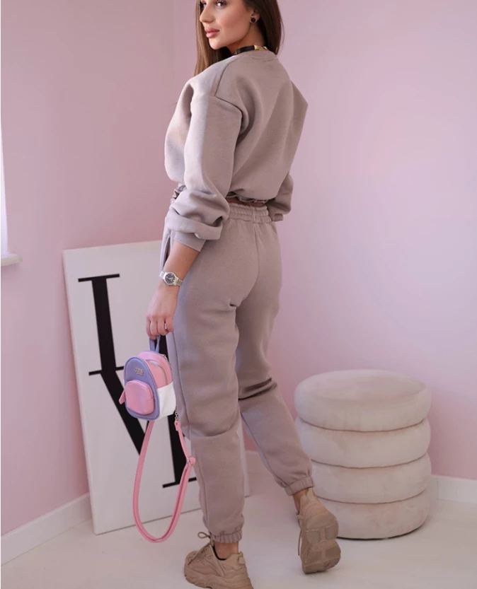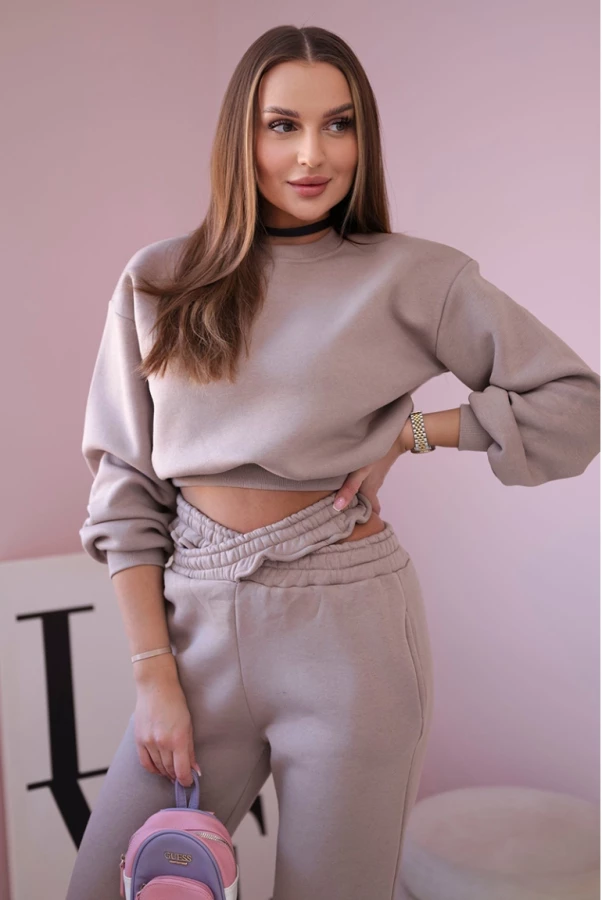 Komplet ocieplany z krótką bluzą Ciemny Beżowy