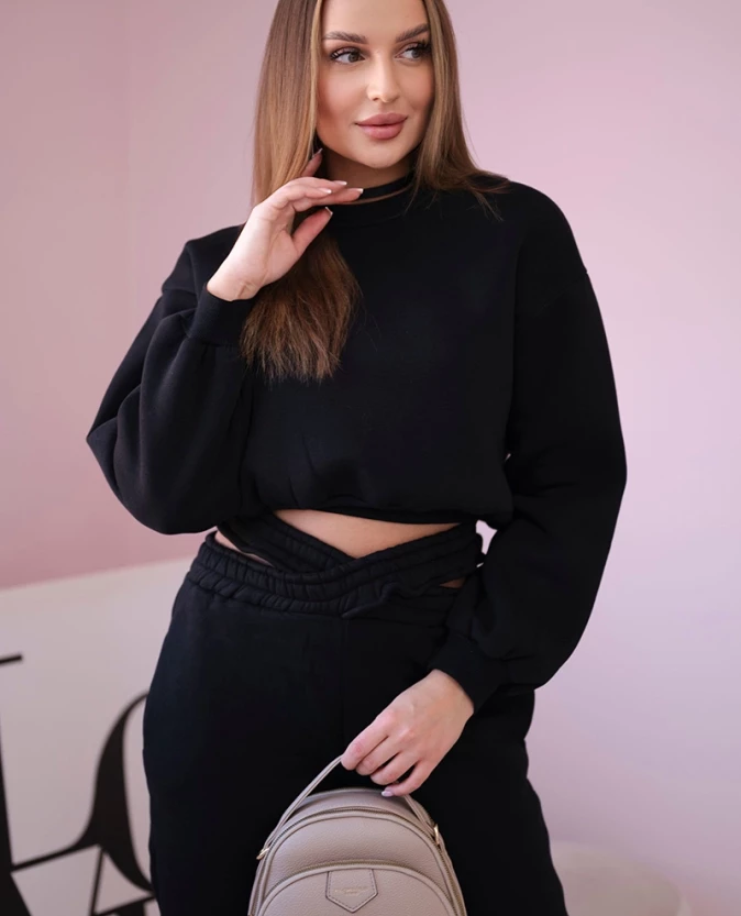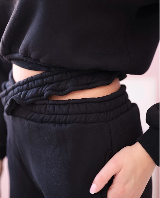 Komplet ocieplany z krótką bluzą Czarny