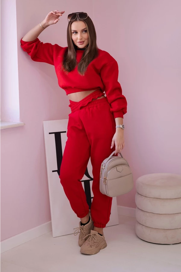 Komplet ocieplany z krótką bluzą Czerwony