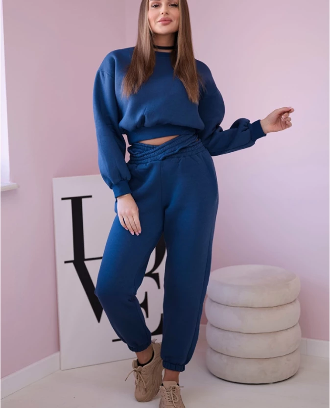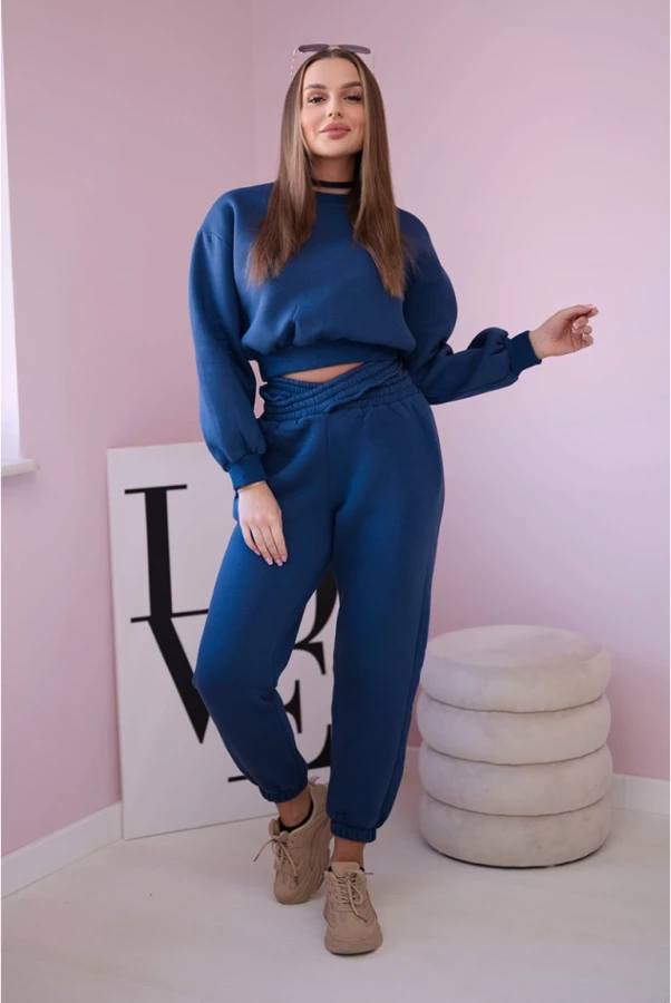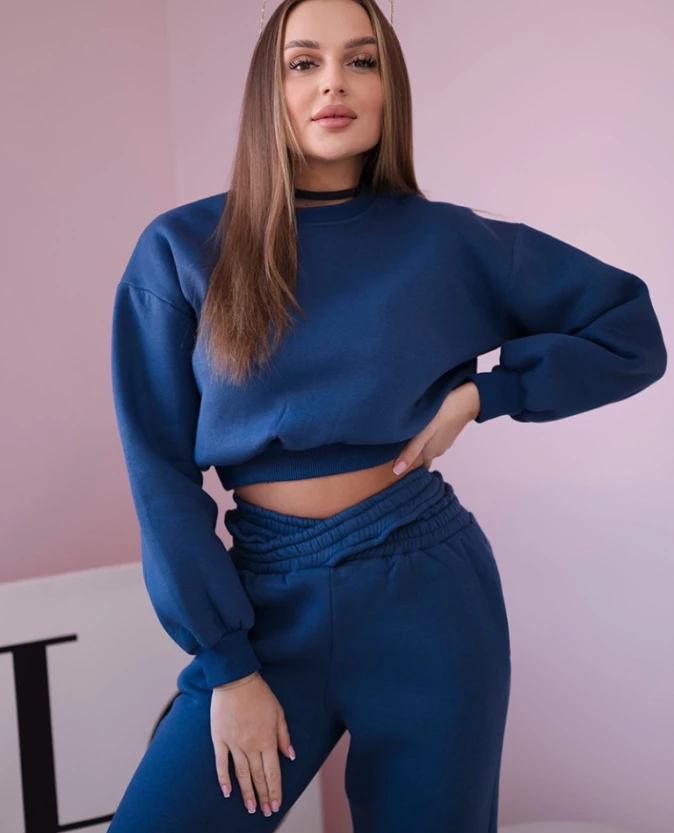 Komplet ocieplany z krótką bluzą Jeansowy