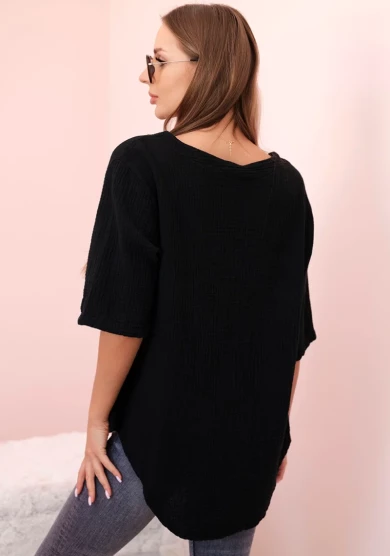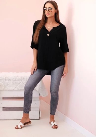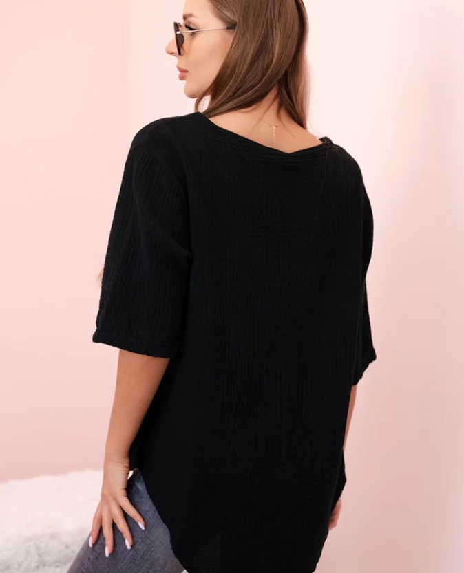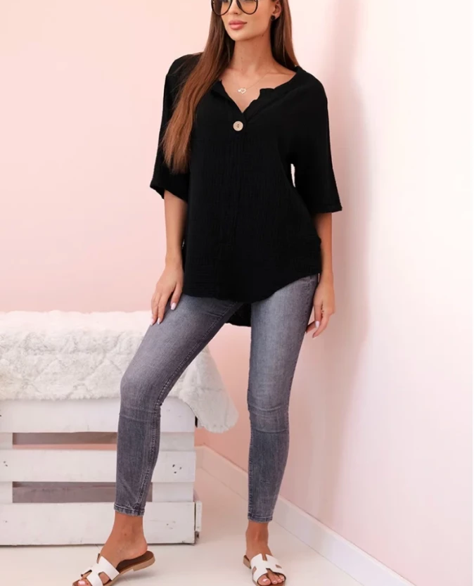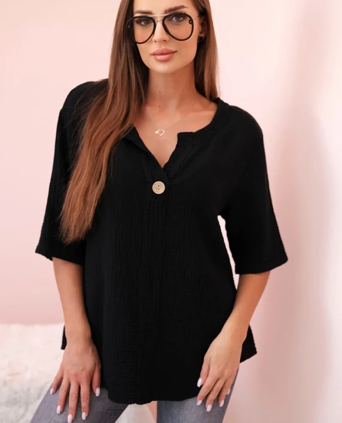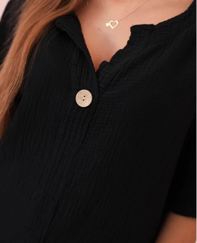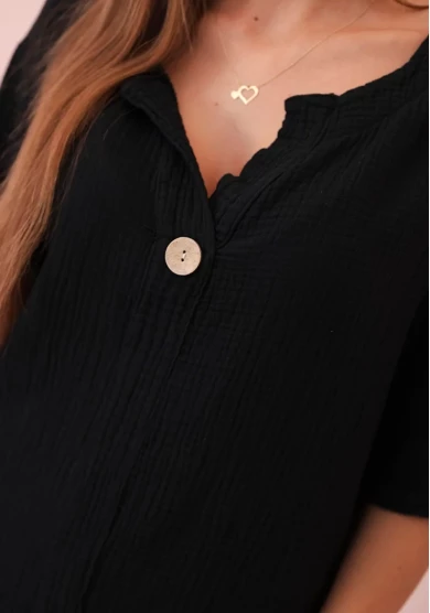 Koszula damska muślinowa z guzikiem Czarna
