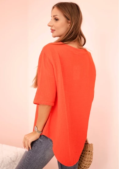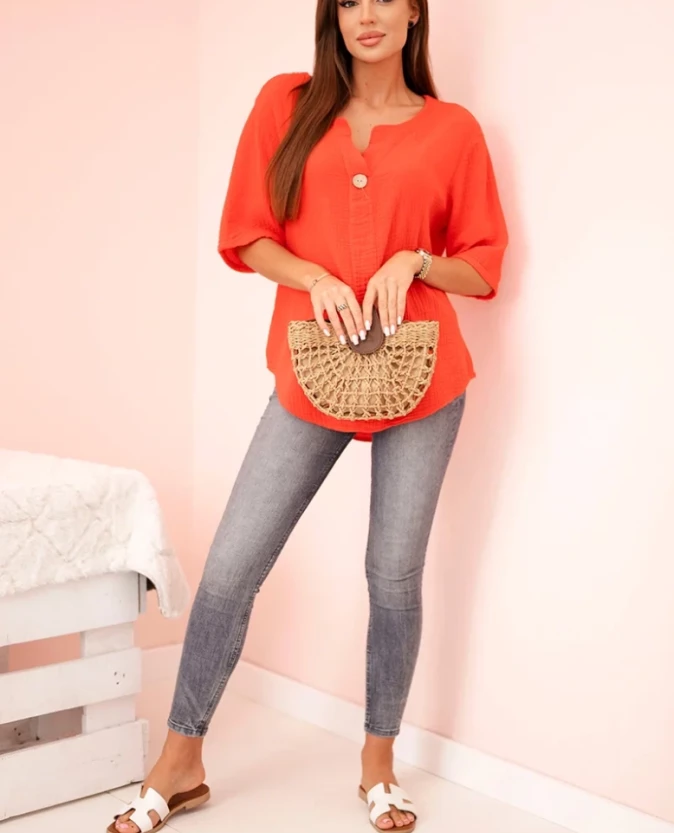 Koszula damska muślinowa z guzikiem Czerwona