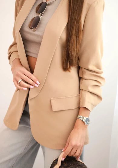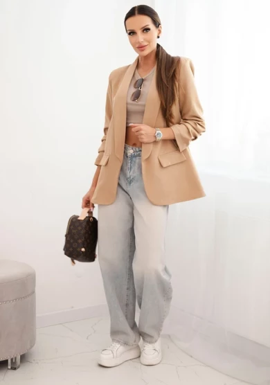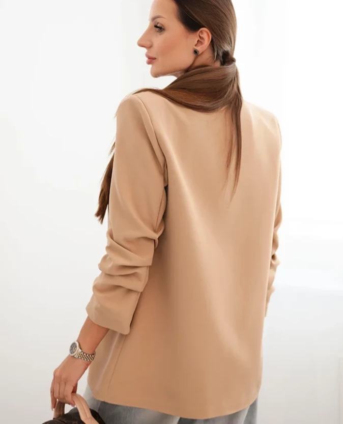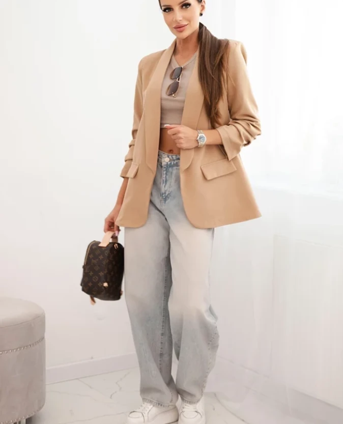 Elegancka marynarka bez zapięcia – Camelowa