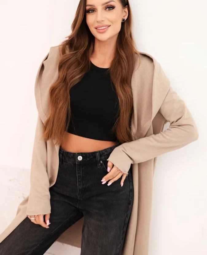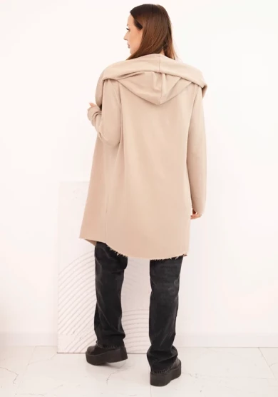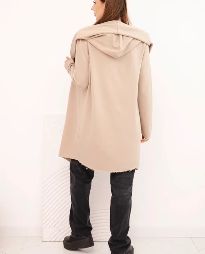 Narzutka damska z bawełny z kapturem i wydłużonym przodem Beżowa