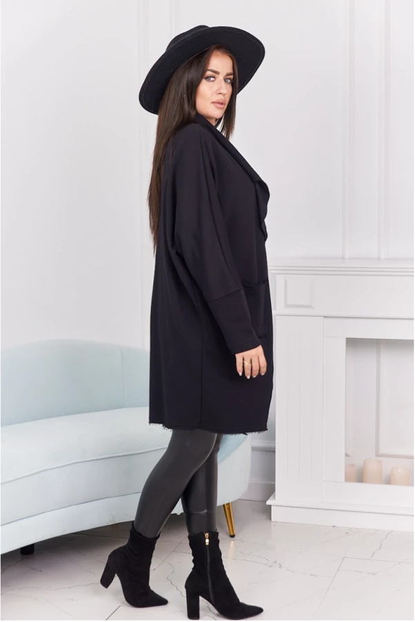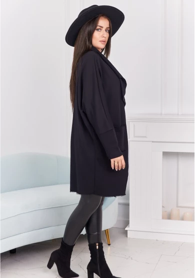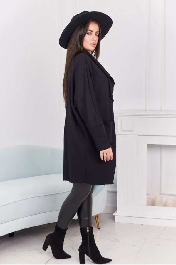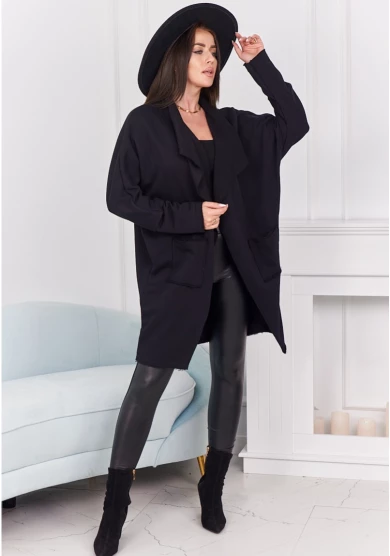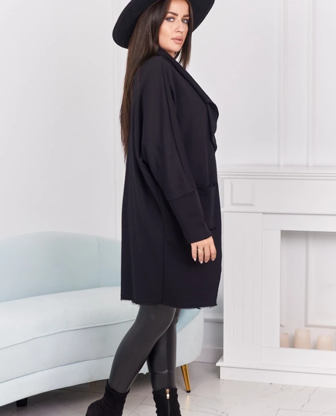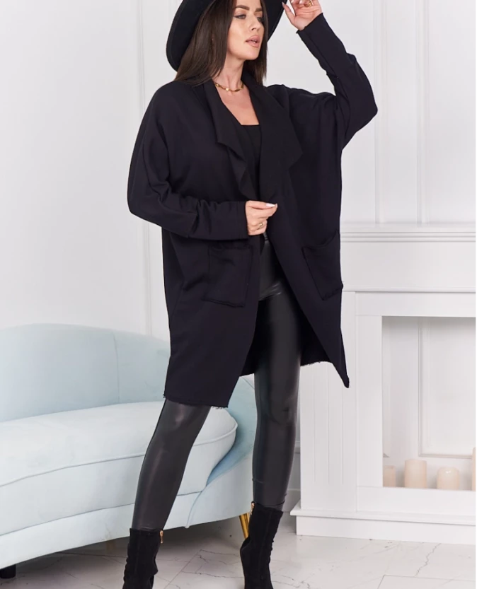 Czarna narzutka z kieszeniami to ponadczasowa klasyka, która doskonale uzupełni każdą stylizację. Łączy wygodę z elegancją, tworząc idealną warstwę na chłodniejsze dni. Praktyczne kieszenie pozwalają mieć pod ręką najpotrzebniejsze drobiazgi, a luźny krój zapewnia swobodę ruchów i komfort noszenia. To uniwersalny model, który sprawdzi się zarówno na co dzień, jak i podczas spotkań ze znajomymi.