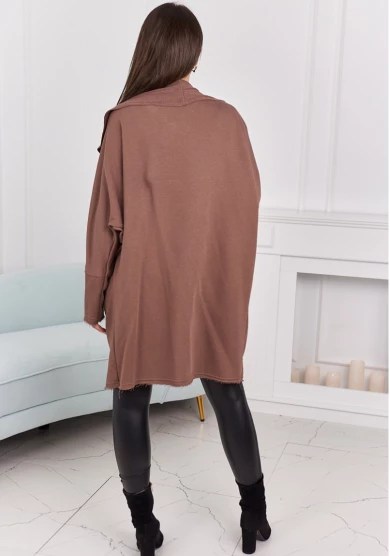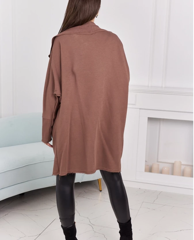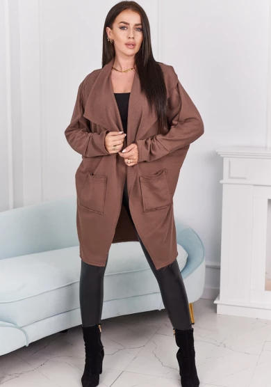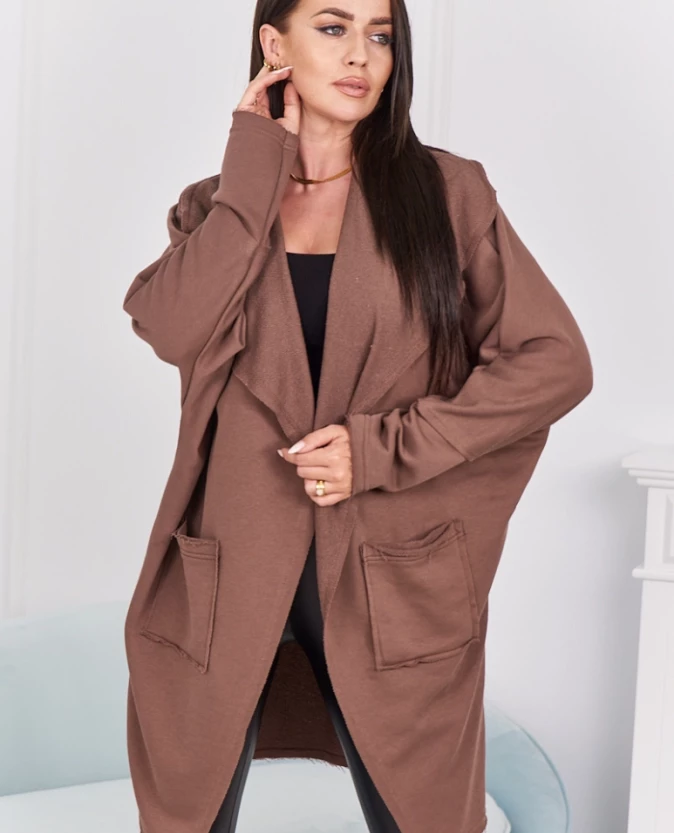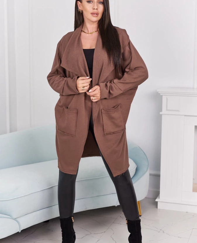 Odcień mocca dodaje stylizacji ciepła i subtelnej elegancji. Narzutka świetnie komponuje się zarówno z jeansami, jak i sukienką. Wygodny, luźny krój oraz wysokiej jakości materiał sprawiają, że to idealny wybór na chłodniejsze dni. Kieszenie dodają praktycznego charakteru, nie zaburzając estetyki całości.