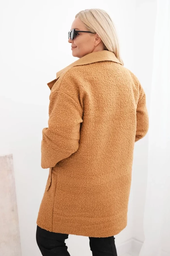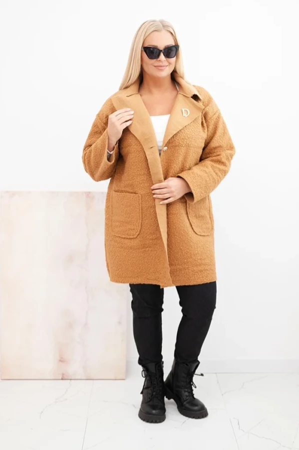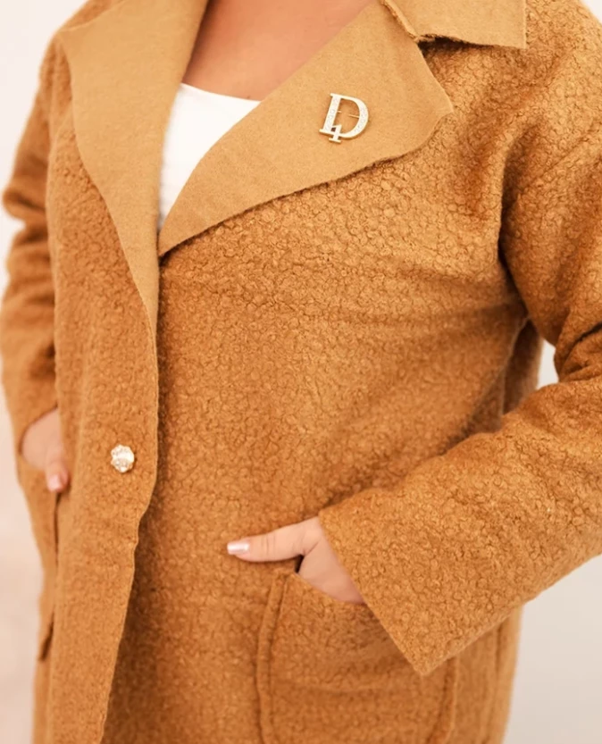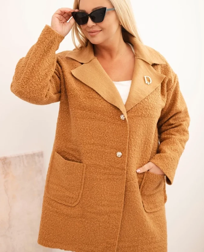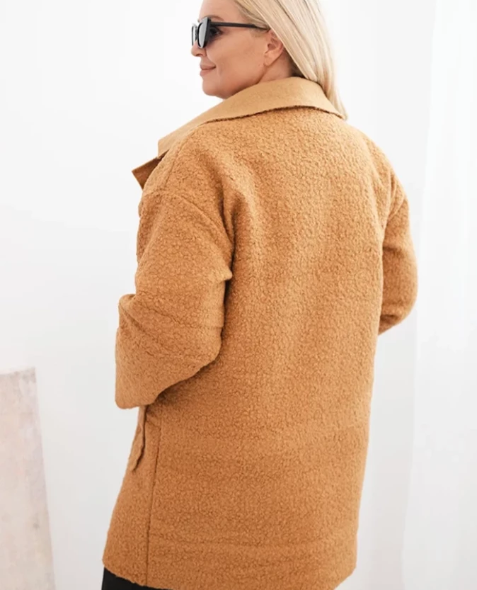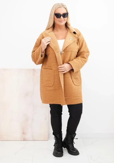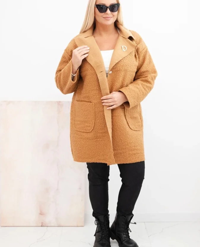 Płaszcz damski Plus Size baranek z wełną i kieszeniami Kamelowy