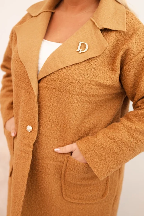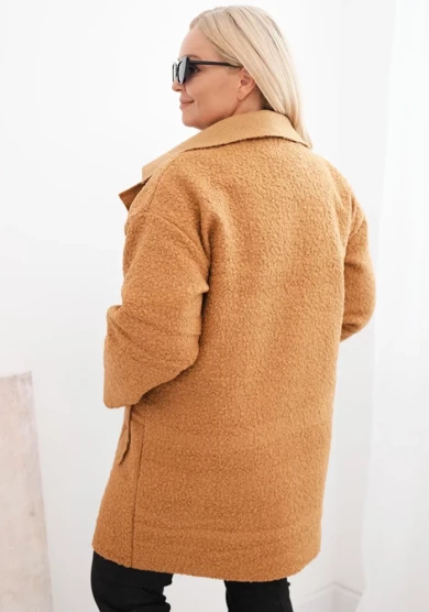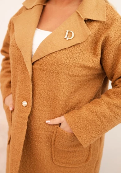 Płaszcz damski baranek z wełną i kieszeniami Camelowy