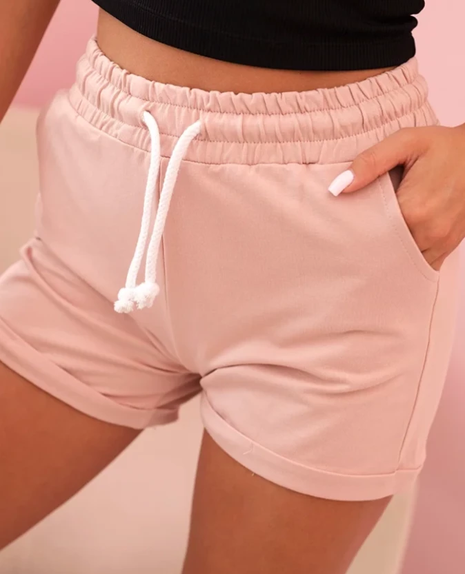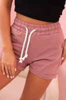 Spodenki damskie bawełniane z gumką i wiązaniem w pasie Ciemny Pudrowy Róż