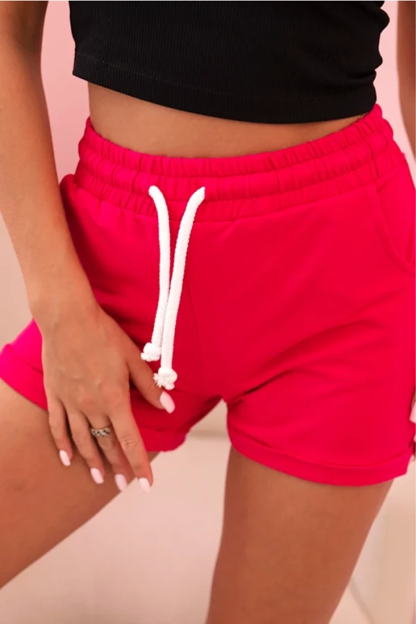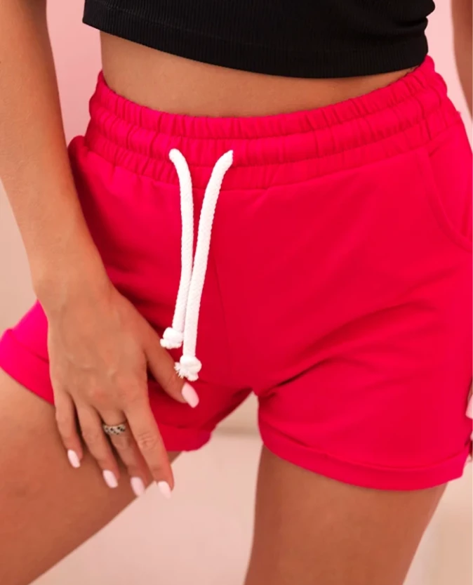 Spodenki damskie bawełniane z gumką i wiązaniem w pasie Fuksja