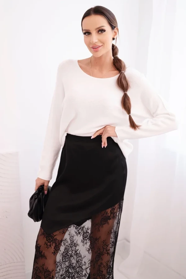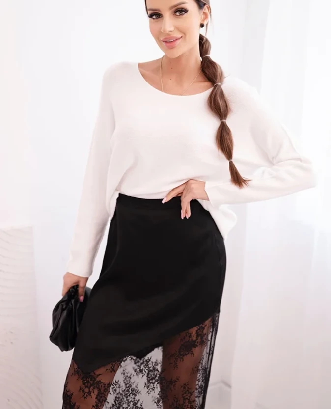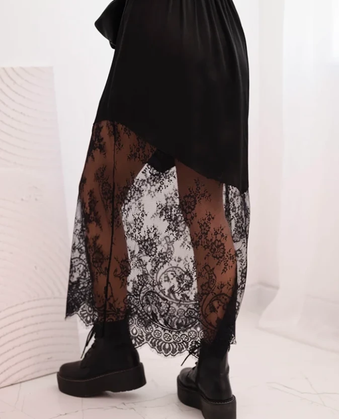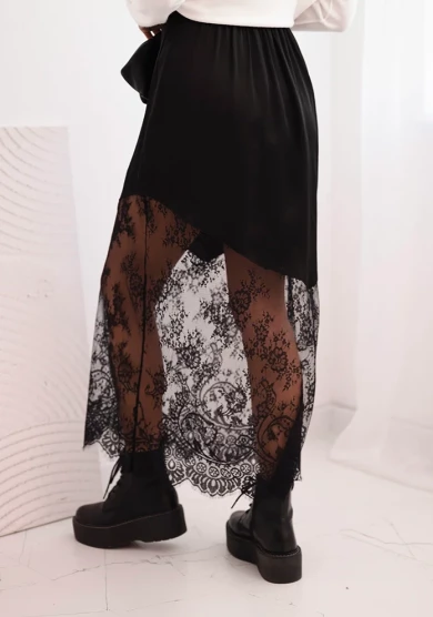 Satynowa spódnica midi z koronką – Czarna