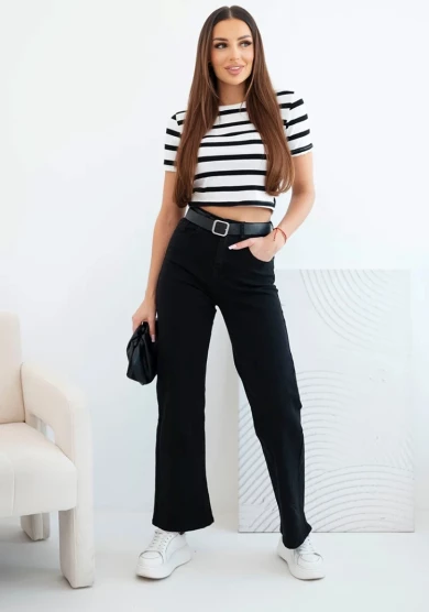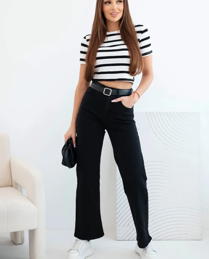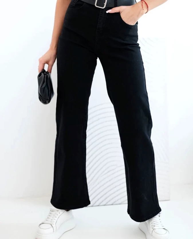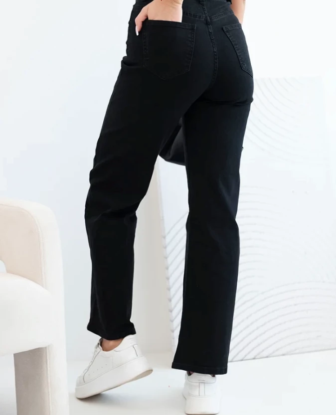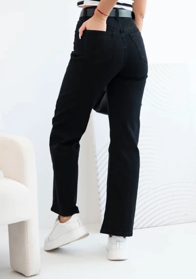 Spodnie damskie jeansowe z prostą nogawką i paskiem Czarne