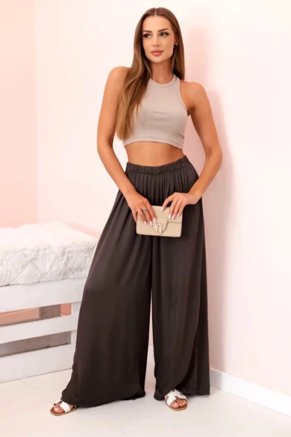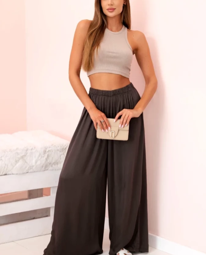 Spodnie damskie wiskozowe szerokie z gumką w pasie Brązowe