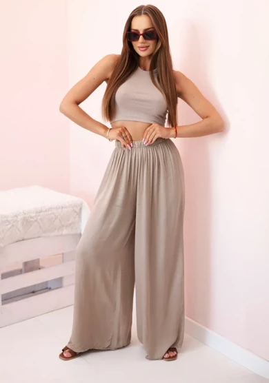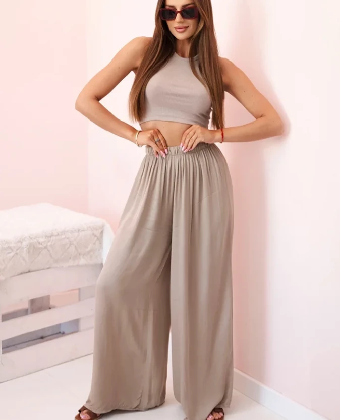 Spodnie damskie wiskozowe szerokie z gumką w pasie Camelowe