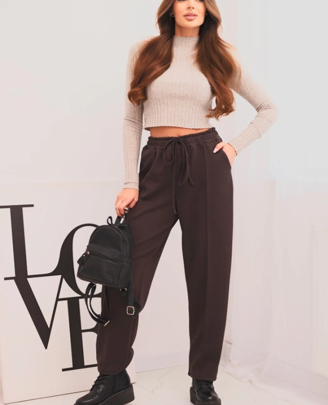 Eleganckie spodnie z wysokim stanem – Brązowe