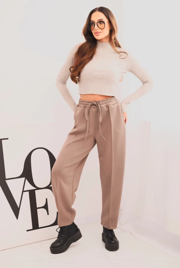 Spodnie damskie z wysokim stanem i wiązaniem w pasie Fango