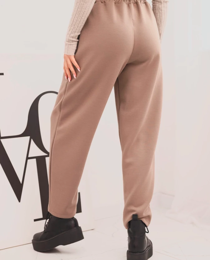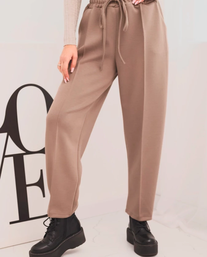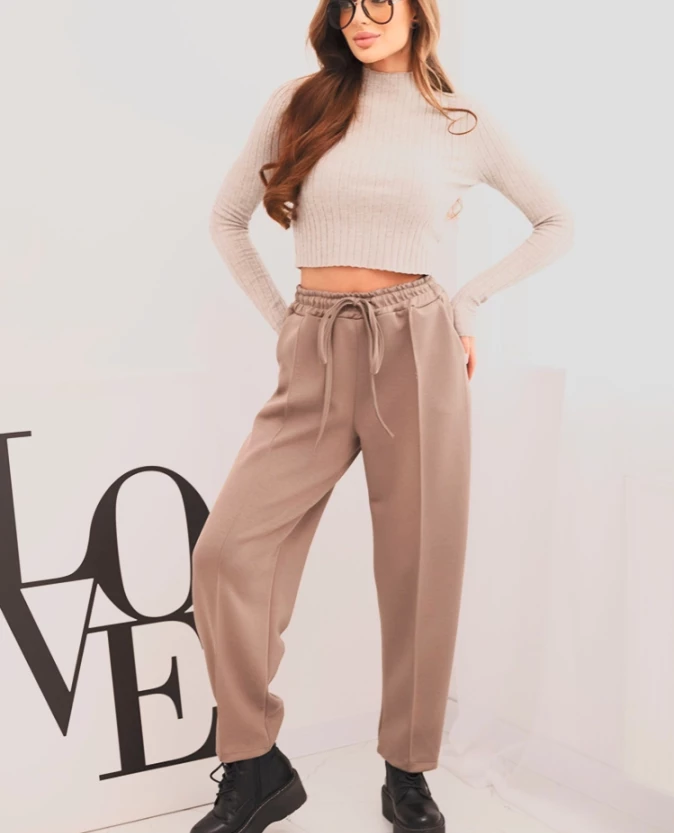 Eleganckie spodnie damskie z wysokim stanem to doskonałe połączenie wygody i ponadczasowego stylu. Wykonane z miękkiego, elastycznego materiału, idealnie dopasowują się do sylwetki i zapewniają komfort noszenia przez cały dzień. Elastyczna gumka w pasie z dodatkowym wiązaniem pozwala na idealne dopasowanie, a praktyczne kieszenie po bokach zwiększają funkcjonalność. Prosty fason z lekko zwężaną nogawką sprawdzi się zarówno w stylizacjach codziennych, biznesowych, jak i smart casual.
