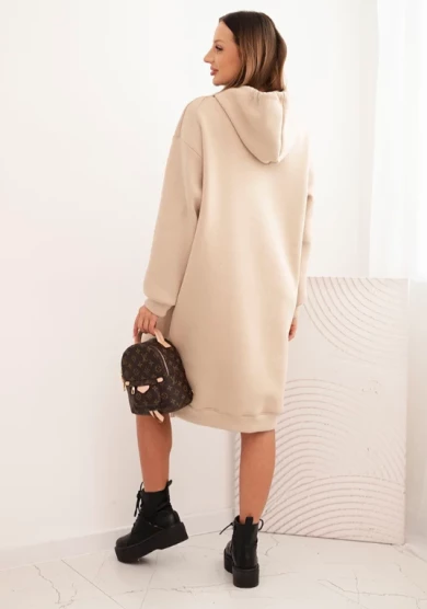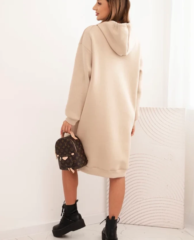 Sukienka damska bawełniana z kapturem ocieplana Beżowa