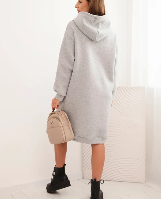 Sukienka damska bawełniana z kapturem ocieplana Szara