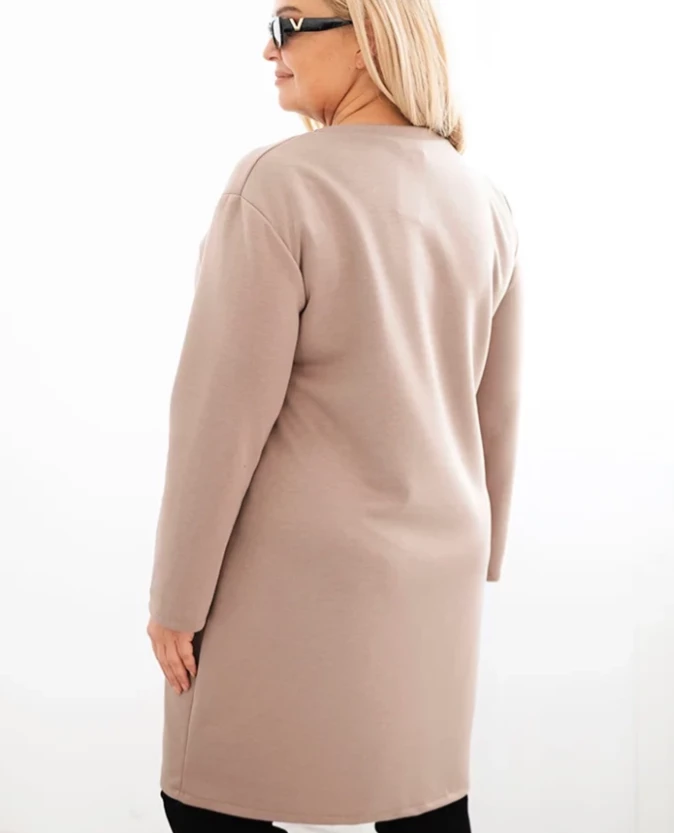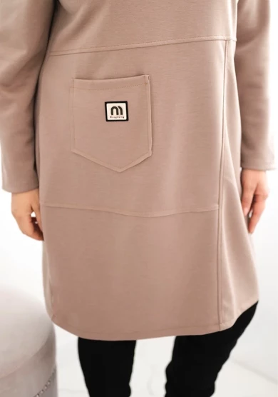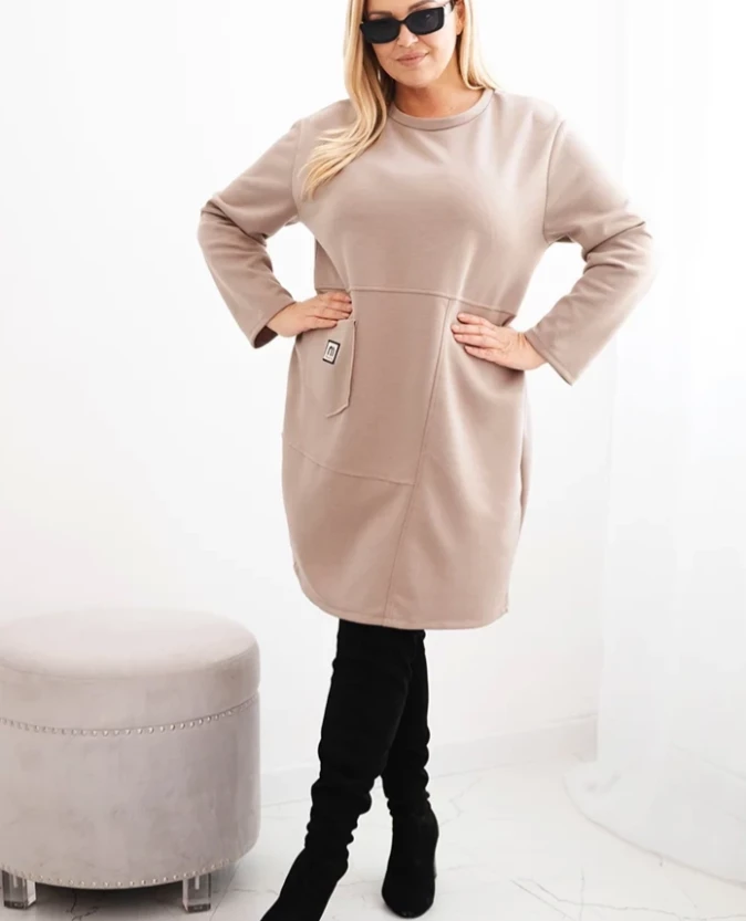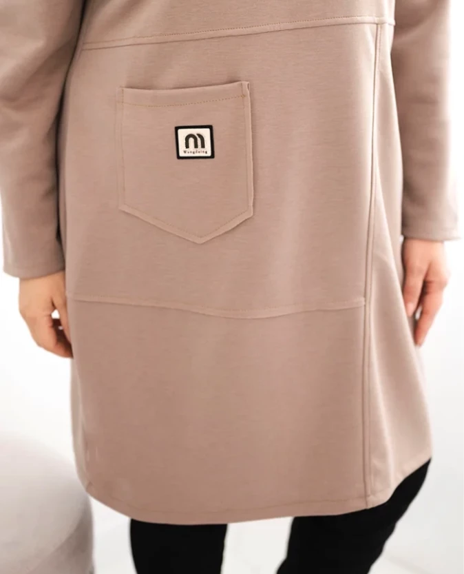 Minimalistyczny design urozmaicony został praktyczną kieszenią z ozdobną naszywką, która dodaje jej charakteru. Luźny krój pozwala nosić ją zarówno solo, jak i z legginsami czy rajstopami. Sprawdzi się doskonale na co dzień, do pracy, na zakupy, a nawet na weekendowy wypad za miasto.