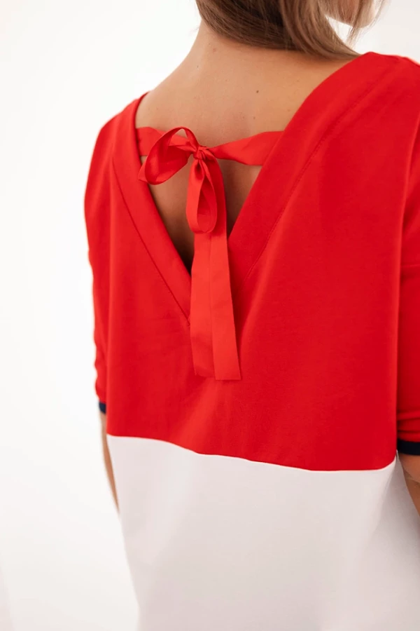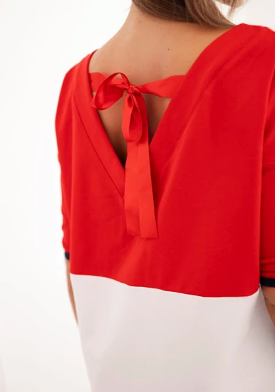 Energetyczna czerwień w połączeniu ze sportowym fasonem tworzy nowoczesną i niezwykle wygodną propozycję na co dzień. Sukienka z dekoltem w serek oraz ozdobnymi troczkami subtelnie podkreśla górną linię sylwetki, a luźny, prosty krój zapewnia pełną swobodę ruchów.