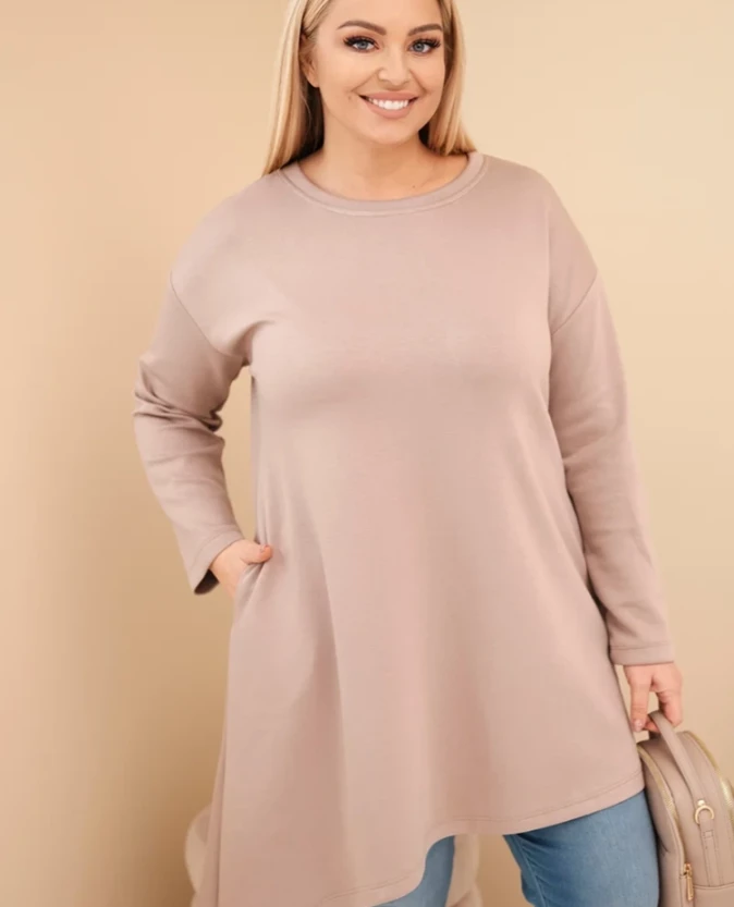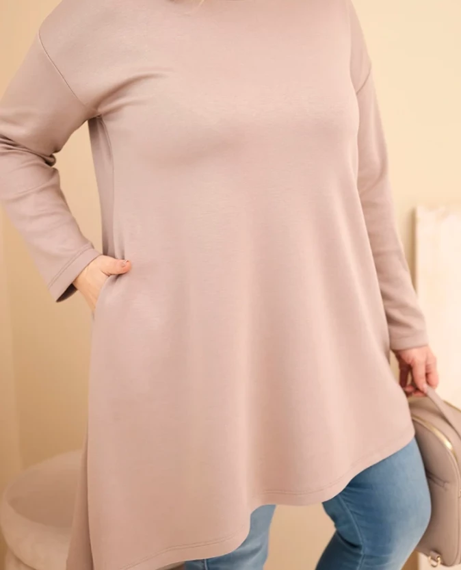 Stylowa i niezwykle komfortowa sukienka z wiskozy to doskonała propozycja na co dzień. Miękki, elastyczny materiał pięknie układa się na sylwetce, zapewniając wygodę przez cały dzień. Luźny fason gwarantuje swobodę ruchów, a dłuższa forma pozwala nosić ją samodzielnie jako kobiecą, casualową stylizację. Subtelnie asymetryczny dół nadaje całości nowoczesnego charakteru.