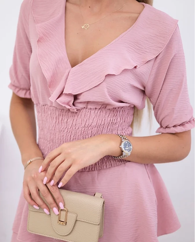 Sukienka taliowana Ciemny Pudrowy Róż
