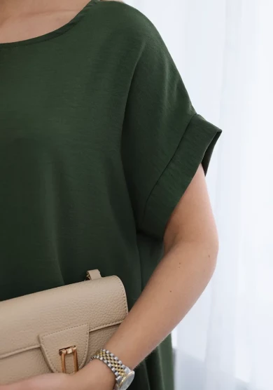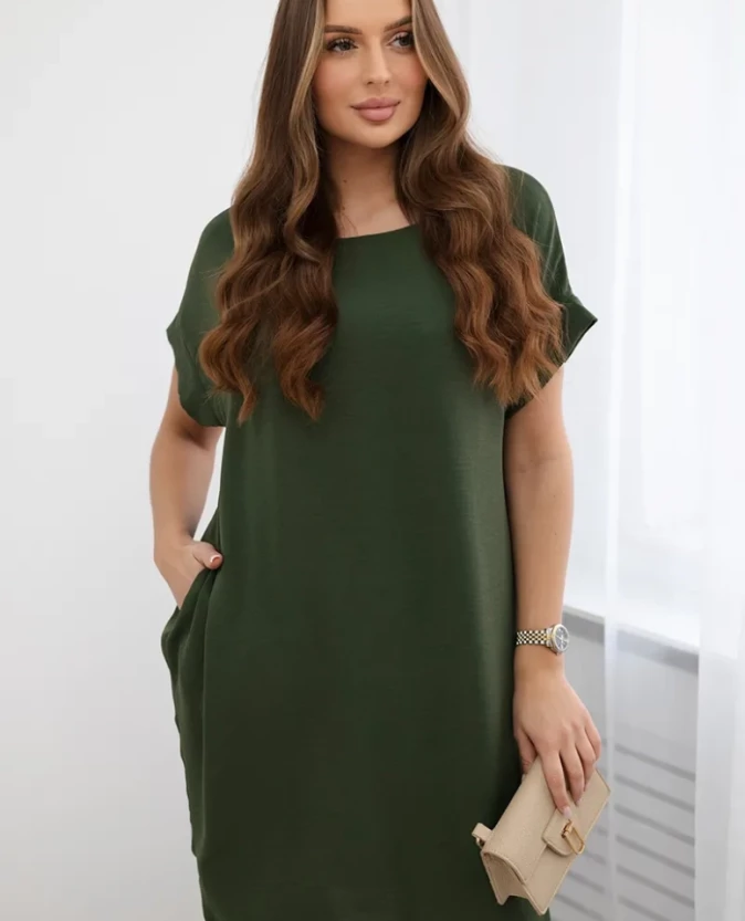 Sukienka w modnym odcieniu khaki to połączenie wygody i nowoczesnego stylu. Swobodny fason oraz praktyczne kieszenie nadają jej casualowego charakteru, jednocześnie zapewniając funkcjonalność na co dzień. To idealna propozycja na spacer, zakupy czy spotkanie z przyjaciółmi.