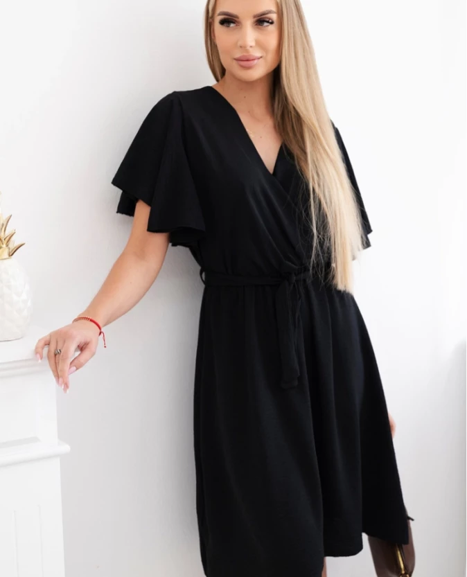 Sukienka z przekładanym dekoltem – czarna