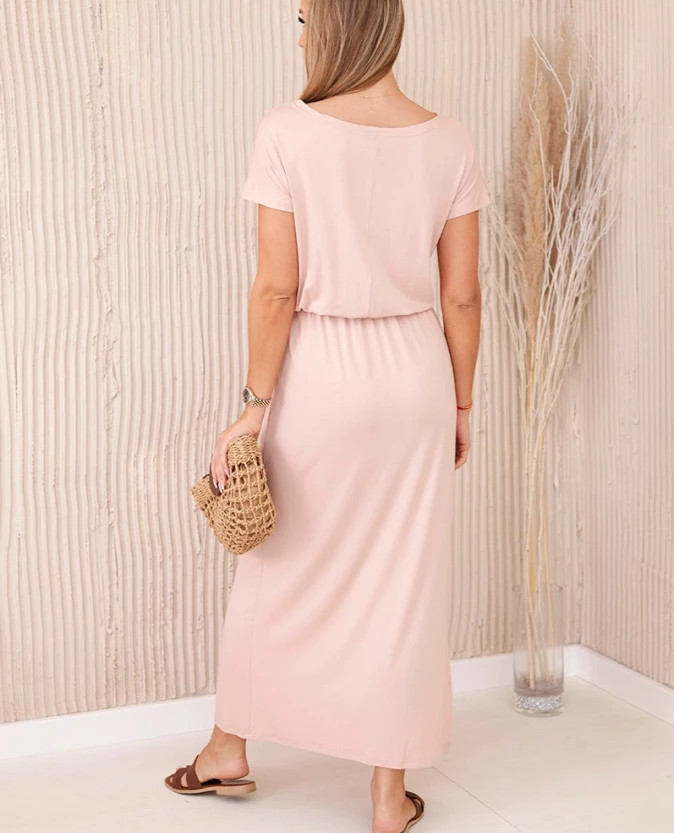 Sukienka z wiskozy z kieszeniami pudrowy róż