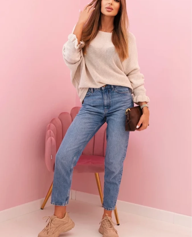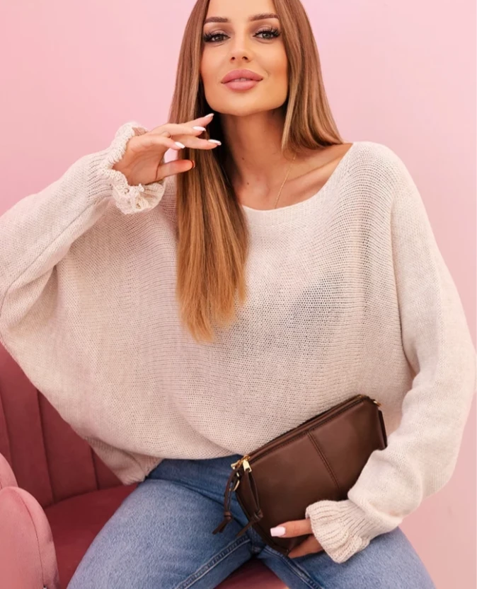 – Fason: luźny sweter z długim rękawem