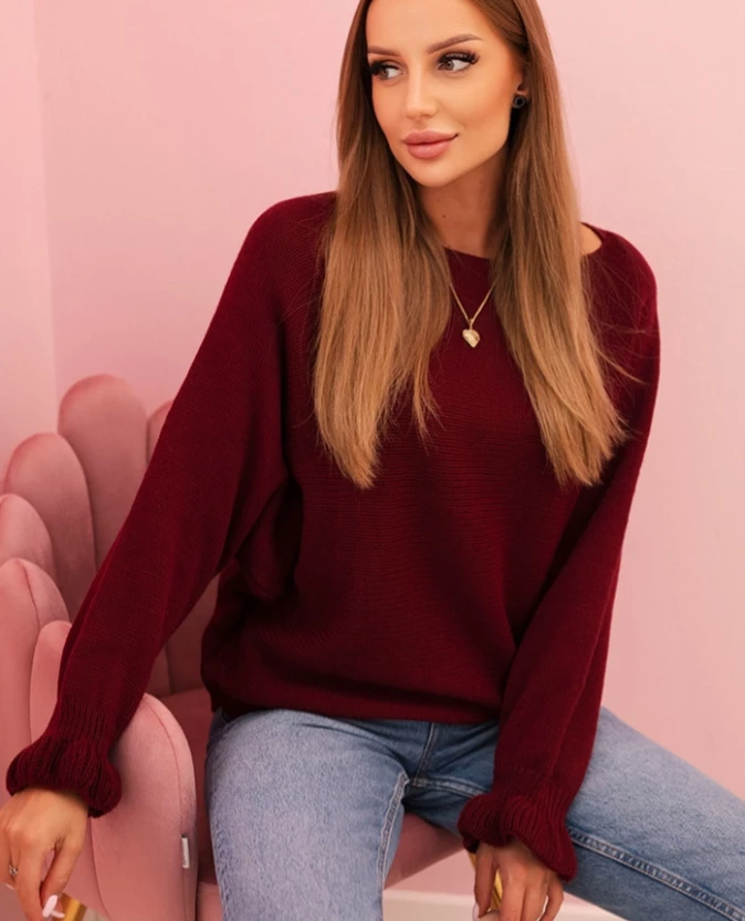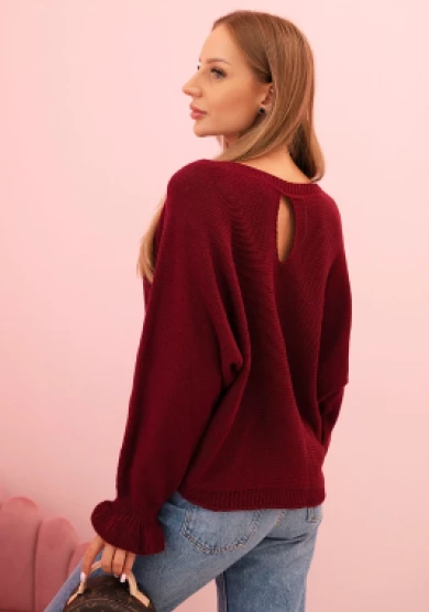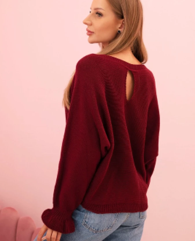 Sweter damski luźny z ozdobnym wycięciem – Bordowy