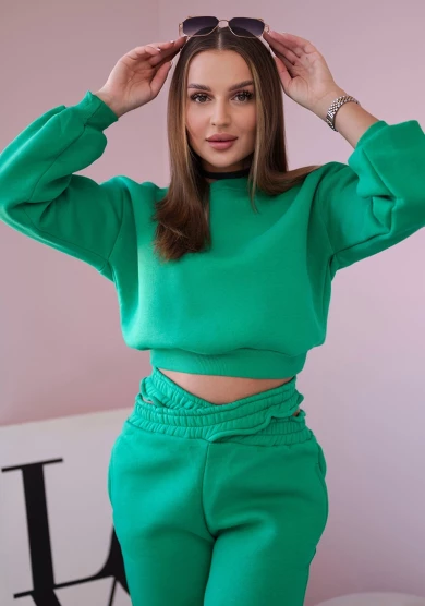 Komplet ocieplany z krótką bluzą Zielony