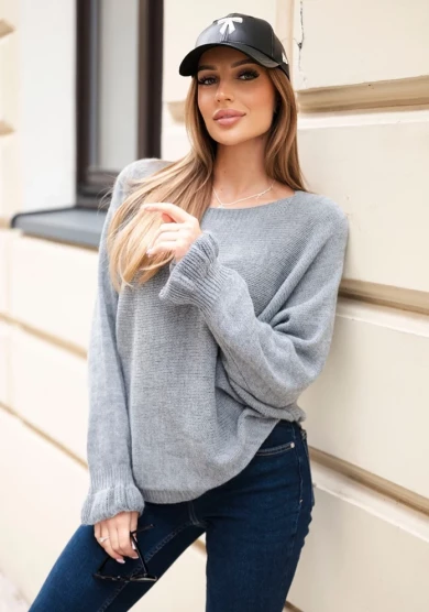 Elegancki i jednocześnie bardzo wygodny długi sweter w szerokie pasy to doskonały wybór na chłodniejsze dni. Stonowana szarość połączona z modnym odcieniem musztardowym tworzy stylową i ponadczasową kompozycję kolorystyczną.