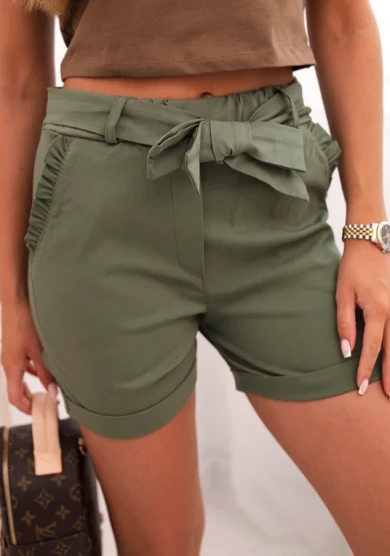 Spodenki damskie z wysokim stanem i paskiem Khaki