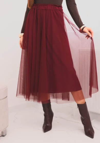 Spódnica damska tiulowa z podszewką z wiskozy Bordowa