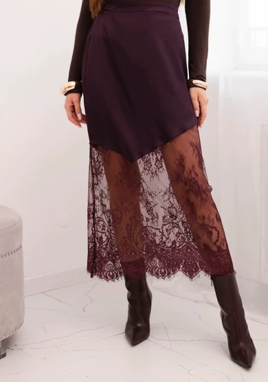 Spódnica damska wiskozowa z koronką Śliwkowa