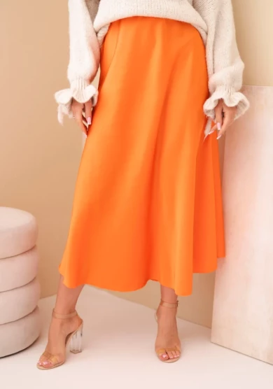 Spódnica damska wiskozowa rozkloszowana Pomarańczowa